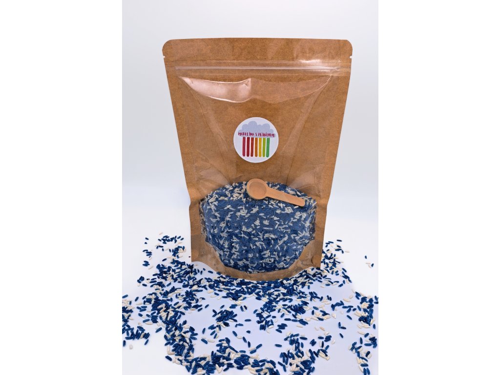 Barevná rýže je základní prvek pro hry se smysly. Při hrabání, nabírání a přelévání zrnek rýže si děti užívají uklidňující i zábavný zážitek.